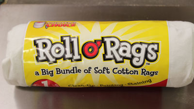 Don't be misled by the "Roll O'" name, by the way… these are individual rags of various sizes that are stacked and rolled up… not one long continuous roll of fabric. The largest rag in the pack I bought measured almost 23" X 32." The smallest was about 6" X 9." There were no seams or hems. Unfortunately, the packages appear to contain a range of fabric from "new looking" to "very used looking." Some of the fabric had spots and some had gray lint… almost like someone washed the rags along with a few pair of old wool socks. But if you are in a pinch, in the middle of a finishing job, or simply forgot to add rags to your last Highland Woodworking order, these rags will work. In the future, though, be smart and add