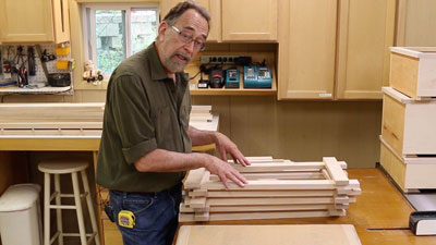 In Part 6, the final installment in the video series coming out in a couple of weeks, the hinge cup holes are drilled, hinges attached, and the doors and cabinets get their final coats of finish. We also make the adjustable interior shelves.