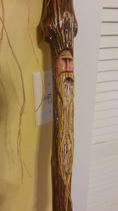 shaped tools will provide different features such as the V-tool for the hair, etc. After several hours of carving I use a round rasp and/or sand paper to finish the