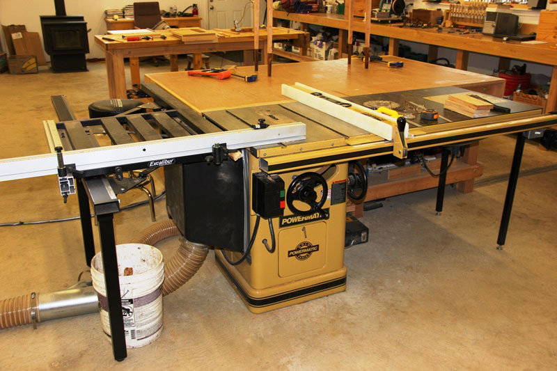 My Powermatic PM 66 Table saw and its accompanying large push-out table forms the foundation of my shop machinery. The saw was damaged out of the box and way out of adjustment when I first brought it home. Now I've got it tuned perfectly and I'm quite happy with its performance. I've thought about upgrading to the newer, 5hp model, but the thought of potentially going through all that adjustment process again is a big turn-off. As the table saw is the cornerstone of most of my woodworking projects, having a dependable, high-quality, perfectly adjusted machine is something I consider paramount. Equipped with a