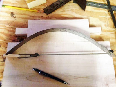 arch at the bottom. Measure and mark both leg/side boards as shown in Figure 1.