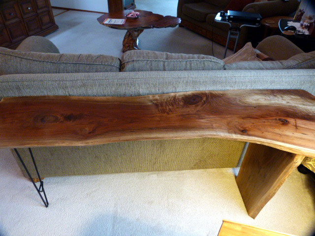 This is a console/sofa table that I built from a slab of Black Walnut: