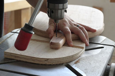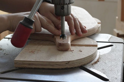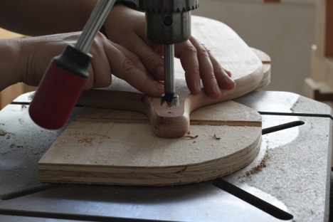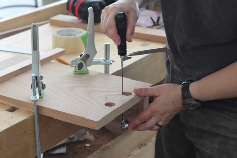 the sides of the handle with her forstner bit.