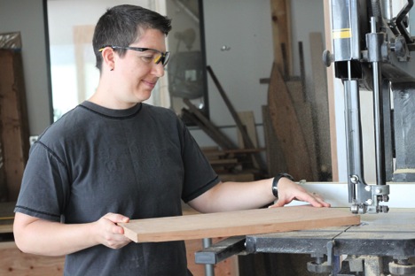 Though she'd spent time at her father's workbench as a child, it was during her studies at Sterling College in Vermont that Kim started to develop her own woodworking acumen. At that time, all Sterling students were required to take a class called "Reverence For Wood," where one had to build a piece with three different wood joints and three coats of finish. Kim chose building frames for some prints she'd bought in her travels to Guatemala as hers. There wasn't open shop access for safety and theft concerns, but Kim had fallen so deeply in love with the woodworking craft that she found a way to sneak in through one of the windows to use the shop space, which was appropriately named Paradise.