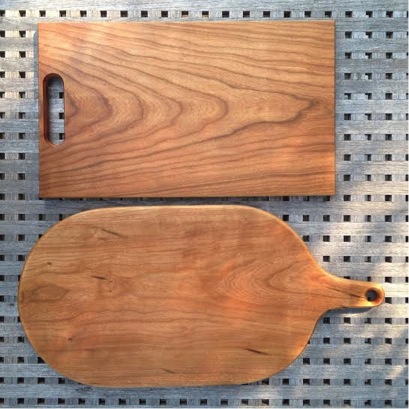 Kim started with two pieces of scrap she found in her pile at home, two pieces of cherry. Her finish of choice is mineral oil rubbed on and sealed with a light coat of beeswax. These can easily be re-applied anytime to maintain the integrity of the wood and protect the cutting board from water damage.