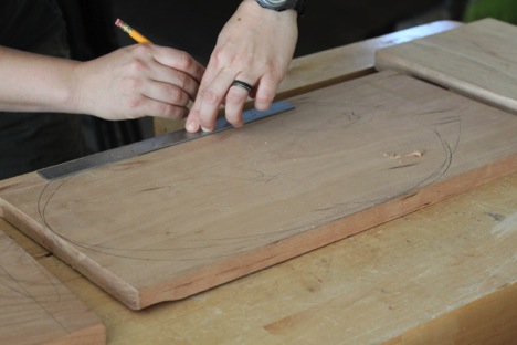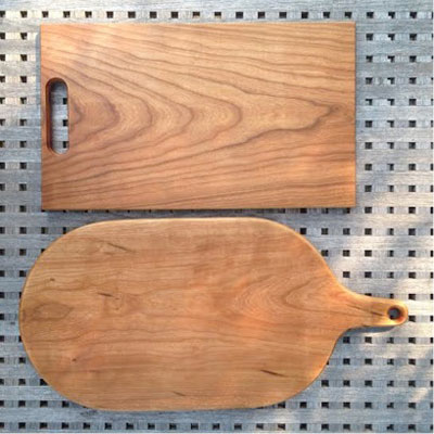 For this article, Kim wanted to share her favorite beginner project, handmade cutting boards. The wonderful thing about this project is that the design is totally arbitrary. Your wood on hand can dictate the dimensions and purpose. If it's a small board, you've got yourself a great cheese board. If it's larger, fantastic, it can be a serving platter or cutting board. It is also a project that can be done completely with hand or power tools, depending on your available and preferred methods of accomplishing woodworking tasks. When Kim uses the bandsaw, a coping saw will suffice. The drill press can easily be replaced with a brace and bit. Where Kim uses the router, a spokeshave, rasp, block plane, chisel, sandpaper, or some combination can do the trick.