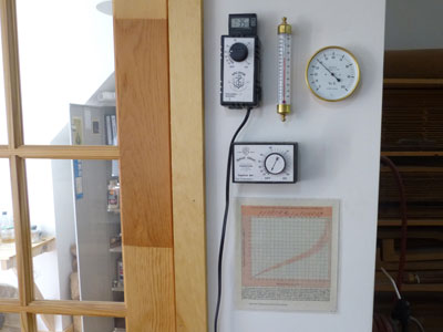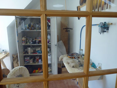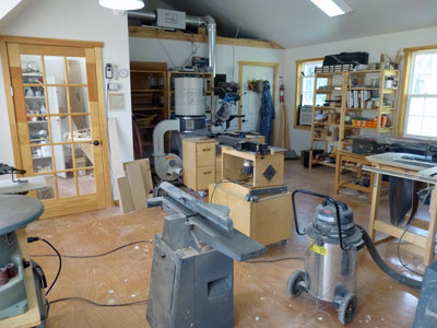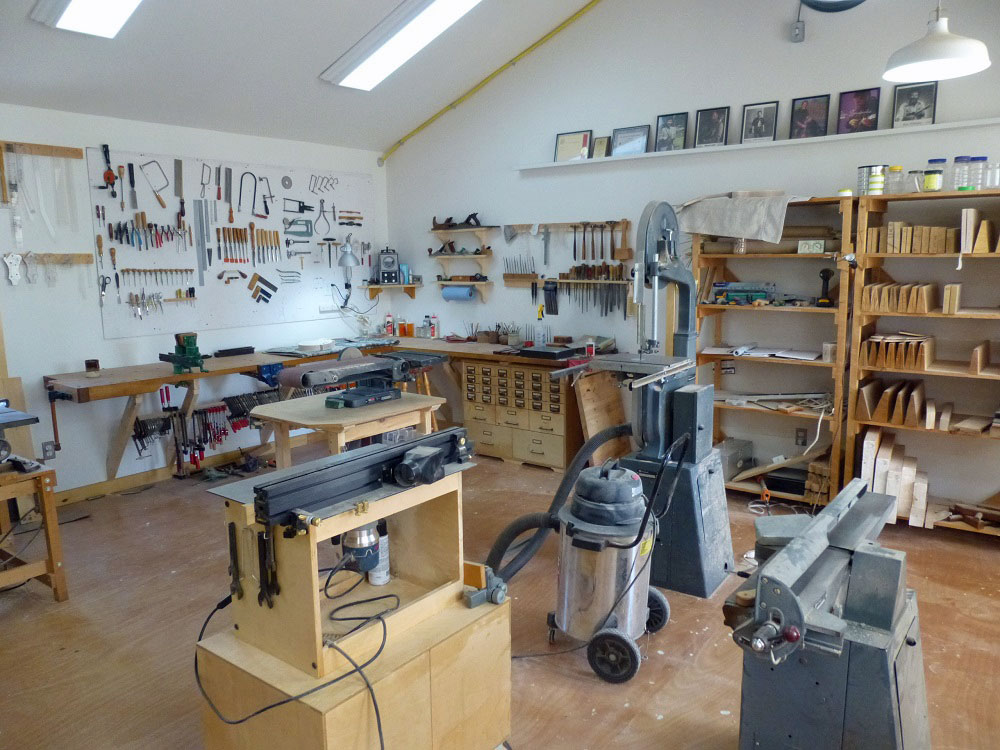 I had the building framed by a local contractor and then I proceded to do all of the interior work, myself, including wiring, insulation, vapour barrior, drywall and trim. Making world class instruments requires, amoung other things, a climate controlled environment for assembly and storage of wood. With a very tightly sealed vapour barrior and a commercial grade dehumidifier I am able to keep the humidity at a constant 40%RH through the most humid of days. In the heating months, a little humidifiction is needed.