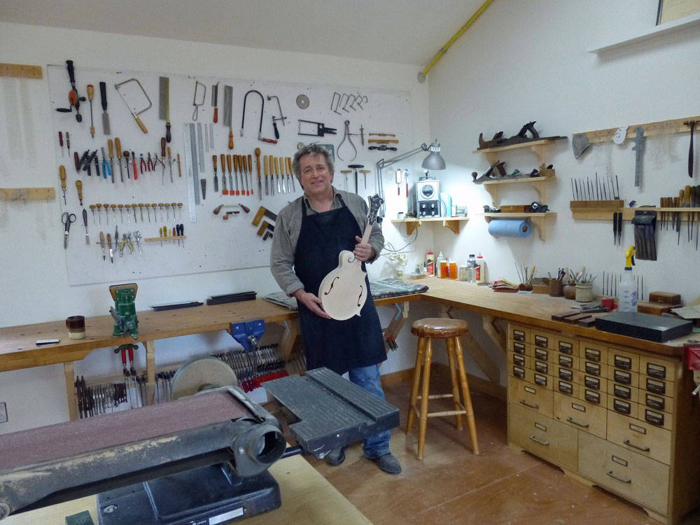 I built my first guitar in 1976 after meeting guitar maker, Grit Laskin, at the Mariposa Folk Festival. A few years later, at the urging of mandolin player, Randall Hill, I built my first mandolin and fell in love with the instrument. Through years of hard work and dedication, I slowly built up my reputation to where I had a steady waiting list of 2 years for my instruments. Though the majority of my customers were from the U.S., I also received orders from Canada, Japan, England, Italy and Germany.