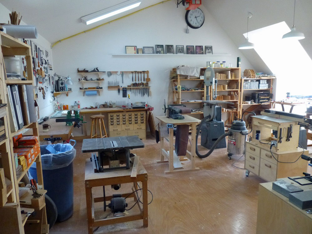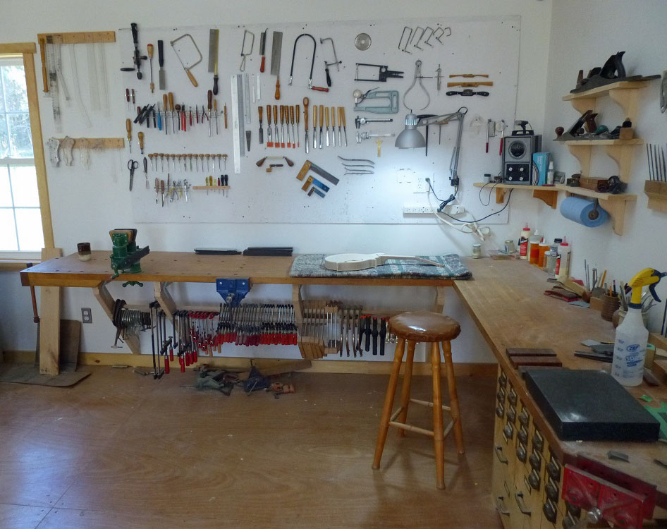 This space is such a pleasure to be in, with its high ceilings and lots of natural light (daylight flourescents and LEDs at night). I am so grateful at having another chance to persue my #1 passion, making musical instruments. I'm hoping to replace my old website with a brand new one very soon so check it out at