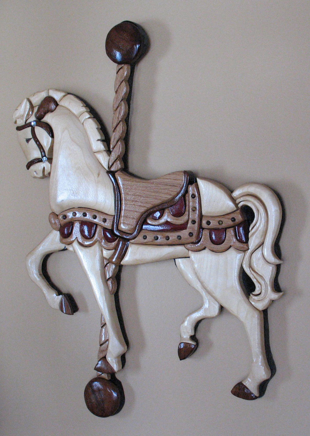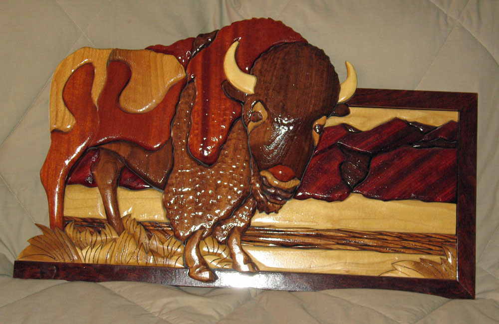 I remember, when I was about 10 years old, building a shoe polish box in 4H and enjoying that, so I started to read about and study woodworking as my hobby. I thought Intarsia would require the least tools (coping saw, skil saw, and a lot of sandpaper) so that is where I started. I soon had a shop full of tools and was also doing furniture design, repair, and building. Intarsia is still my first love but I really enjoy building anything from a small inlaid box to a house. Though some things require more planning than others....