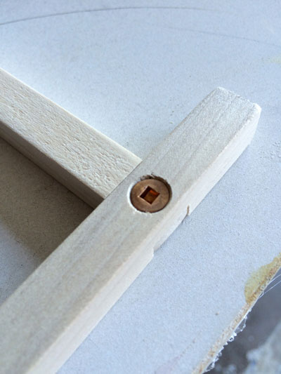 Each half-lap joint will be secured by a slightly shortened #8 by 1/2-inch screw, so