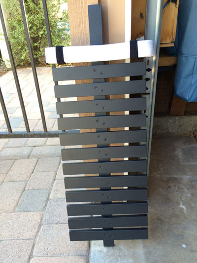 The strips were painted flat red after assembly to fill any gaps. The entire