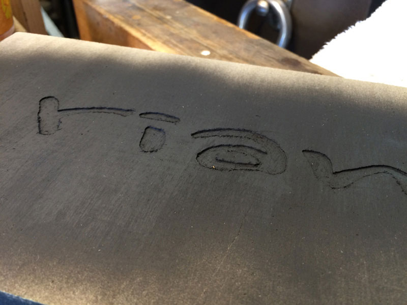 The paint in the letters was removed with my Foredom to provide a clear wood