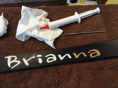 into the letters. I ruined one banner by putting in too much epoxy which, when