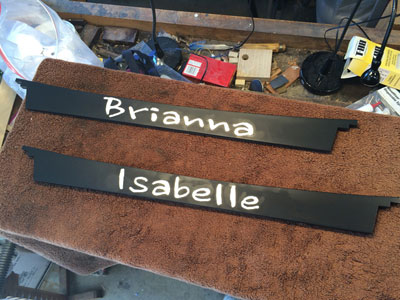 Both banners were painted flat black after routing and sanding.