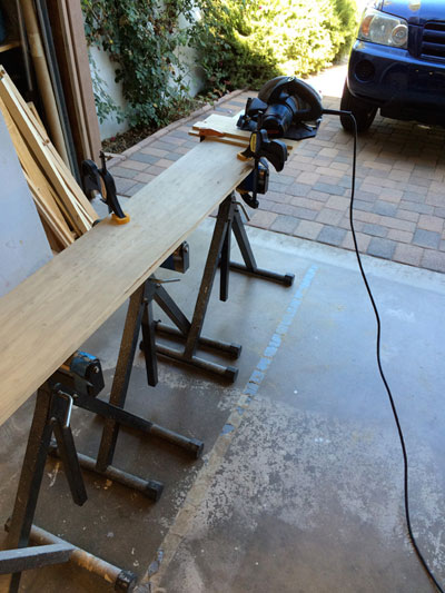 With all the pieces marked up it was time to cut the long boards into more easily