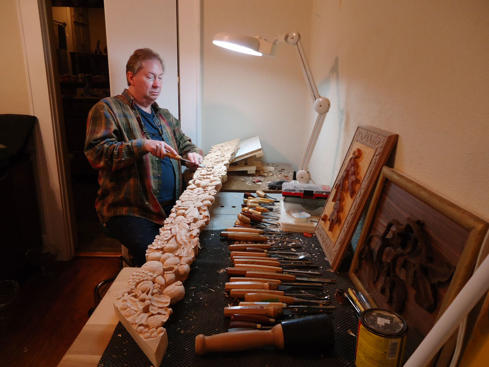 relief carving and this eventually led me to the mirror frame I am working on now. Smaller carvings