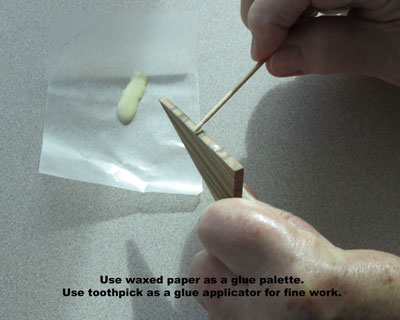I always have a box of waxed paper in my shop. I use small pieces as a palette for glue or sometimes paint. I squeeze a few drops of glue onto my "palette" and then use a toothpick to apply the glue to the project. Waxed paper also isolates projects being glued from getting glued to my workbench. And I occasionally use it to mask projects being spray finished.