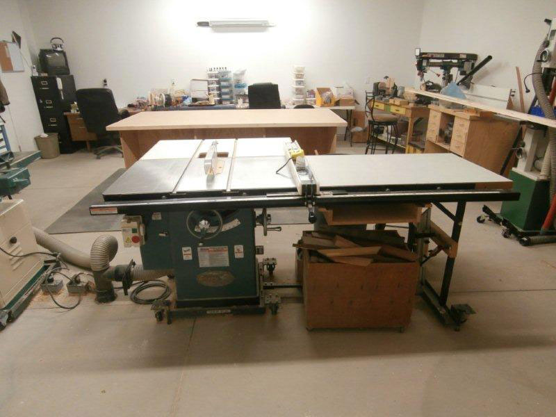 The table saw is the centerpiece, occupying about 1/4 of the space.