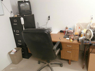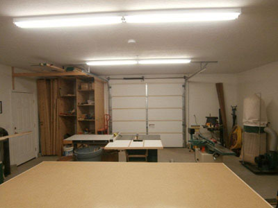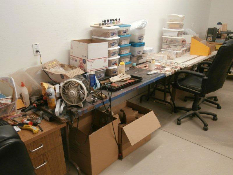 The back wall has some temporary tables for assembly and storage until something more permanent gets built - like some wall cabinets.