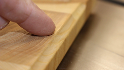 I applied a few coats of shellac with a drop or two of dark walnut TransTint dye mixed in just to seal the grain, add some color, and "pop" the grain. Later, I applied a polyurethane/oil finish. Remember, this is a "serving" board, not a "cutting" board.
