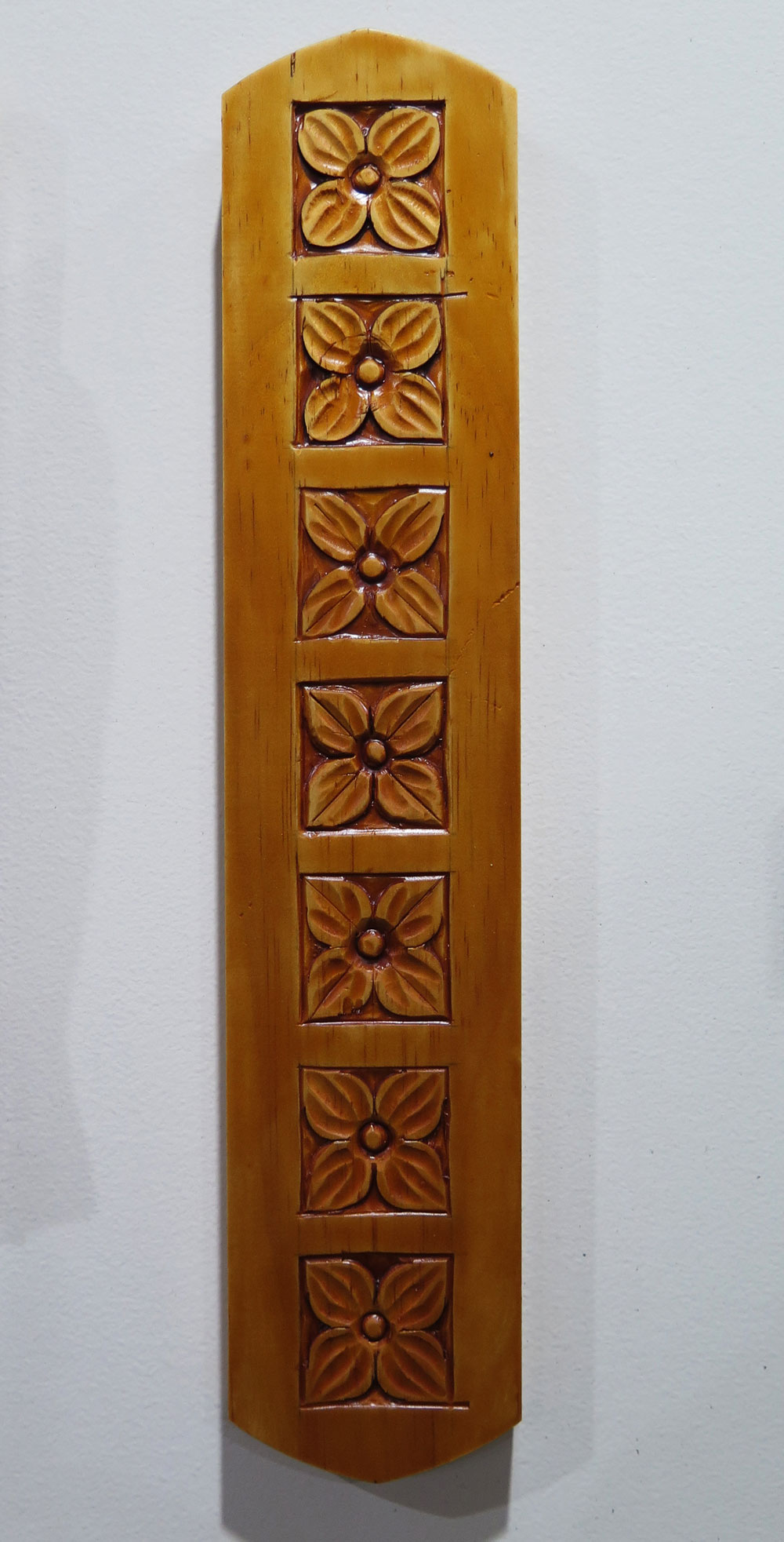 My first attempt was an 'exercise' piece (seen below) carving blossoms. It serves no real purpose