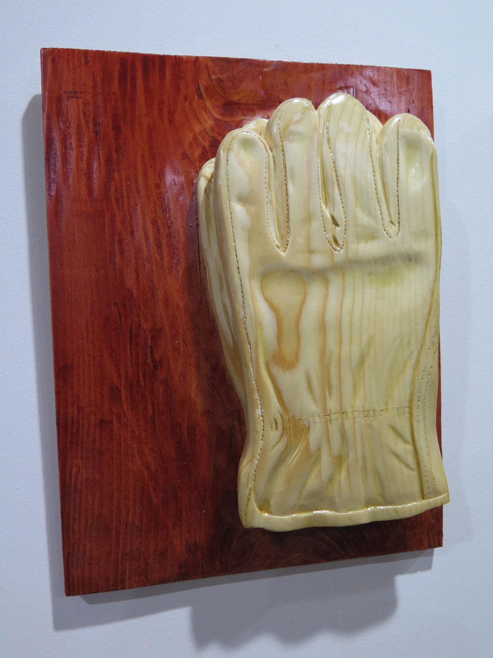 hard to see. A dark stain on the background to highlight the gloves and then a clear