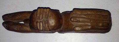 Although I occasionally employ power tools, like a rotary tool or jigsaw, I prefer hand tools. I typically employ large chisels for the roughing out, and detail with a quarter inch chisel and a variety of Exacto style blades. Sanding is also a big part of the process, as I prefer to carve people and animals. I like a soft feel to the finished product, a feel you can see, if that makes any sense. I usually start with a sixty grit to break the grain and any errant cuts down. Then I run on down as far as 240, depending on the subject matter and the wood.
