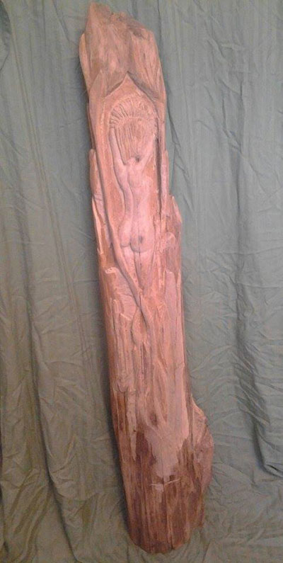 About twenty years ago, perhaps a little more, I visited some friends at their home in Bath, NC while in town for Spring Break. They were a talented group of guys I had hung out with occasionally over the years. We all gathered on the deck at the rear of the house and had beers and talked. And there in the corner of the deck behind a chair was an ornately carved piece of cedar, about six feet tall and probably eight or nine inches in circumference. One of the brothers (they were brothers, by the way) had carved it. And when I asked about it, he asked me to step in the house, and showed me three more, each one more impressive than the first. His name is Chris Jarvis, and he is a fantastic craftsman. I returned to college four days later and started my first carving. I have been carving ever since.