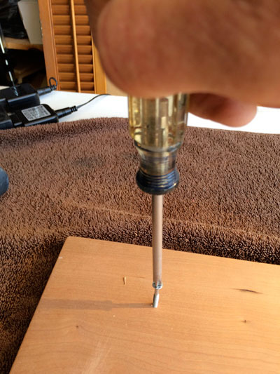I used a taper bit to taper the holes from the rear of the front panels for the