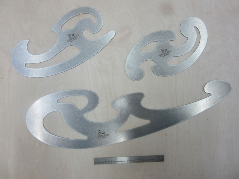 are metal french curves made by Sterling Tool Works. These are precision cut, thick gauge curves that will let you draw curves on full scale drawings. The Roubo curves will last a lifetime!
