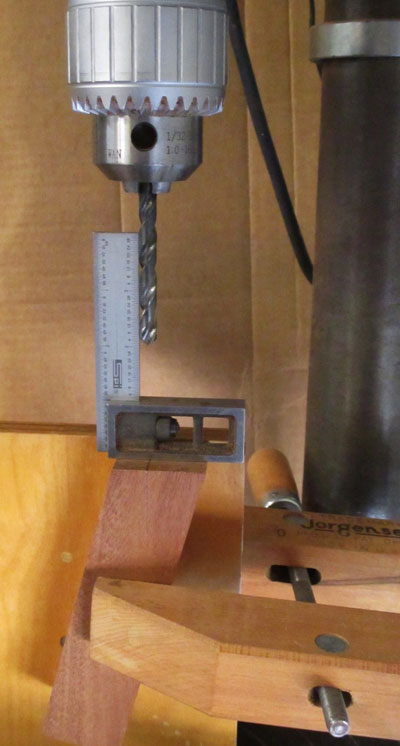 the work surface perpendicular to the drill. I drilled the hole about 1-1/2" deep in