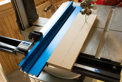 . This curved resaw fence mounts on the bandsaw fence to provide for resawing using the single point resaw method.