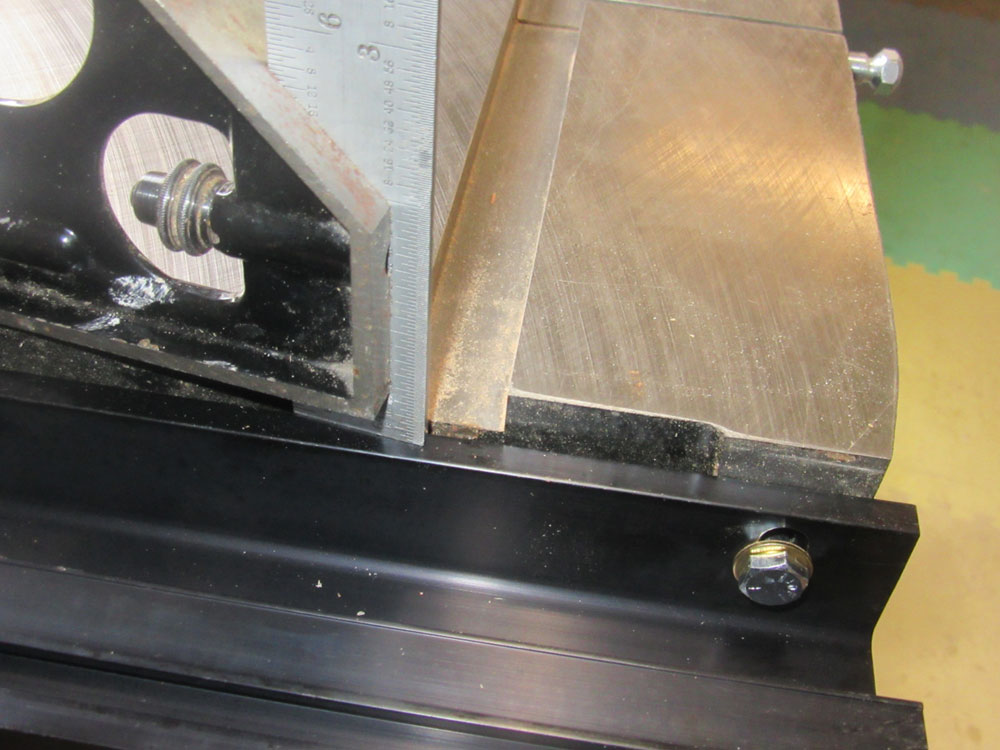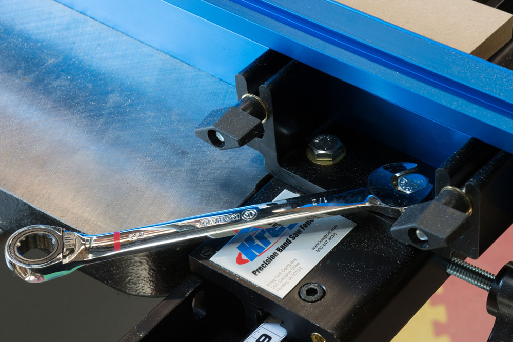 Now, you can loosen the two bolts holding the Kreg fence and bring the fence flush to the side of the board. Tighten the bolts. Access to the bolts is very convenient on this fence, which makes this adjustment extremely easy.