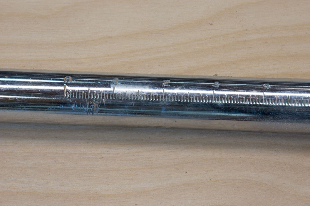 The tube bolts onto the front of the saw, and in my case, the zero mark never lined up perfectly with the scale and the scale markings themselves are not precision by any means!