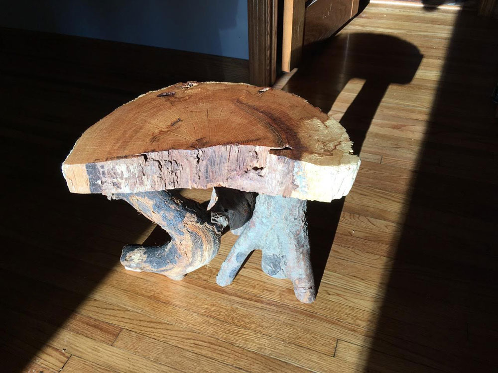 Below is one of my first projects. The top is cedar and the legs are oak. It was all pulled out of the wood pile that was intended for heating the house.