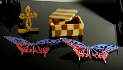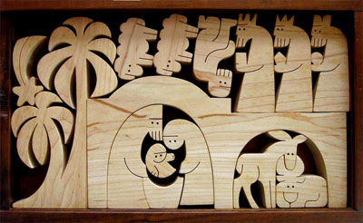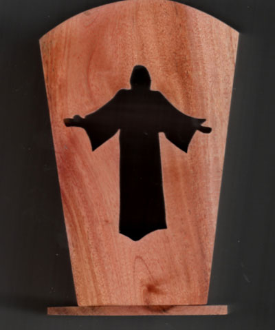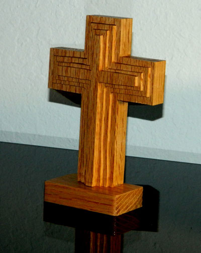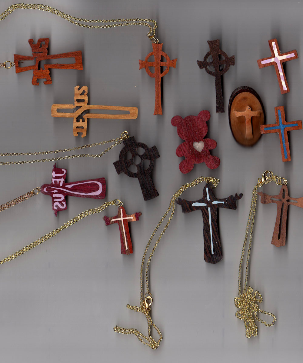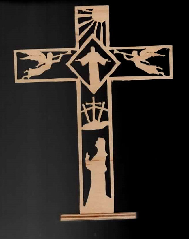One day I was fooling around on the web and came across a scroll saw on Ebay for $38 so I bought it in a lark and have been hooked ever since. I've made intarsia as well as many carvings by hand. My real love came in making religious articles for people at my church. I don't design them. I use any pattern I can find. I've made thousands of these items, which include 4 foot crosses, neck and tie tacks, and much more.