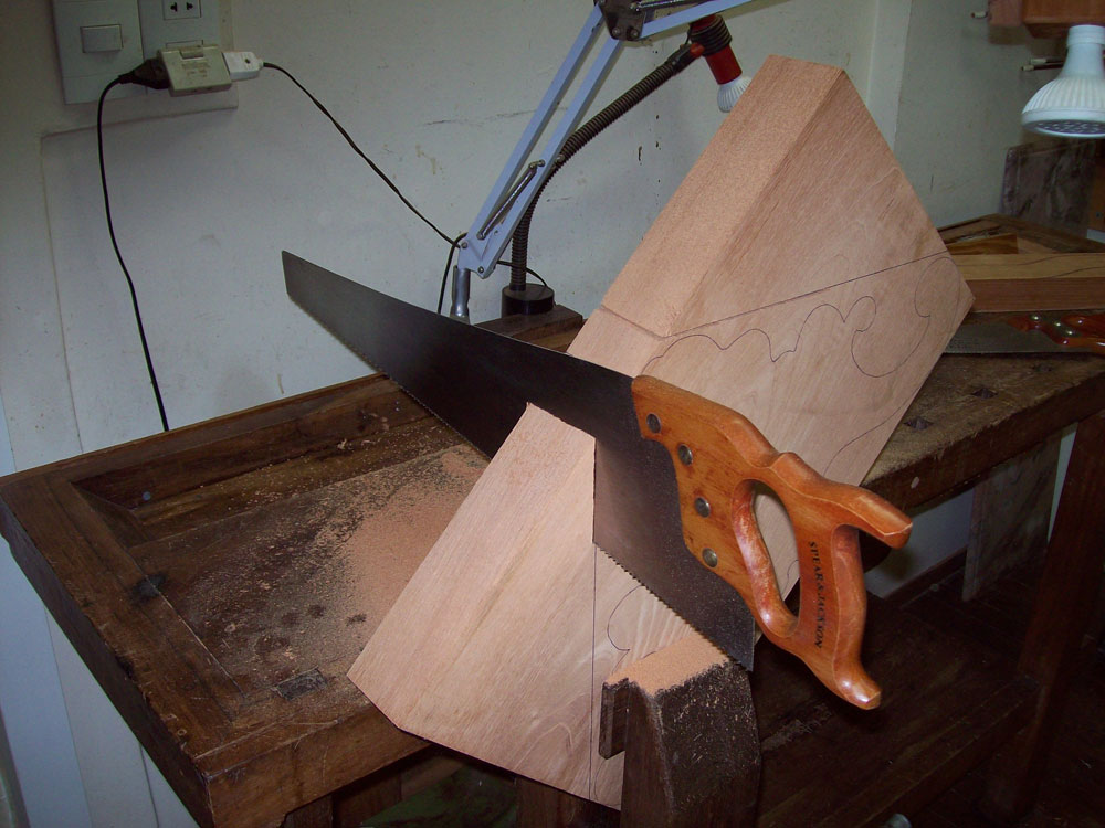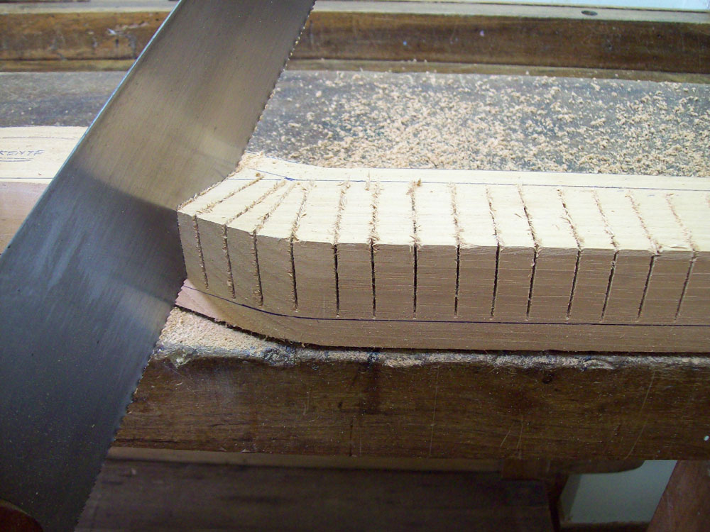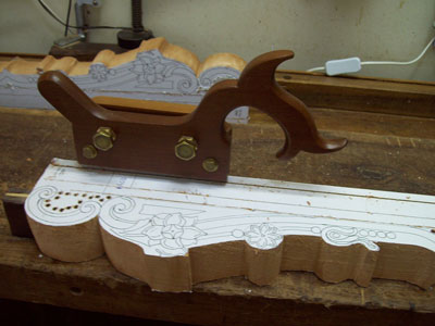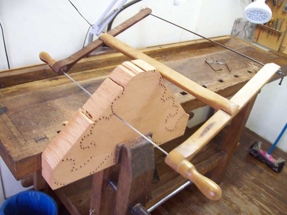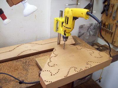 holes in a line that contours any irregularly shaped piece, in order to use the bow-saw in an