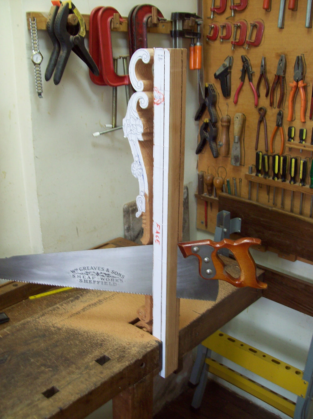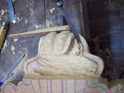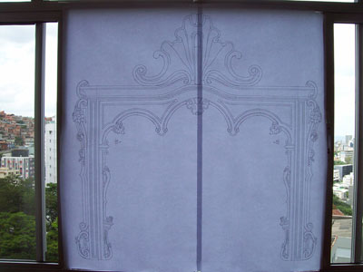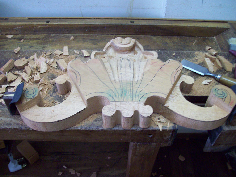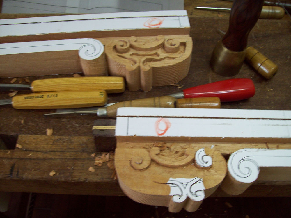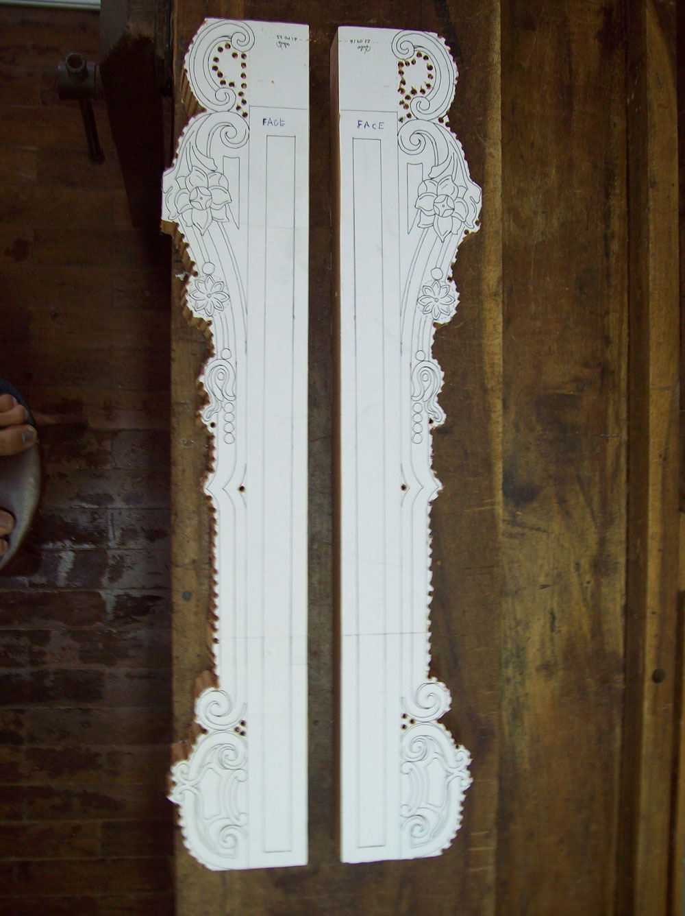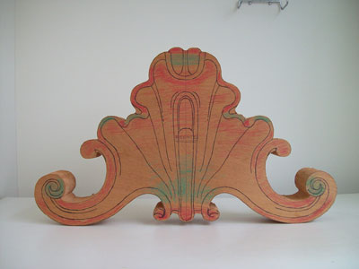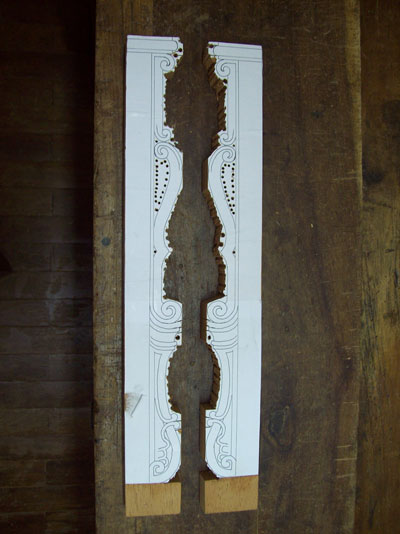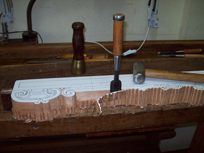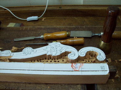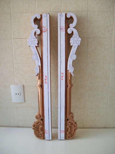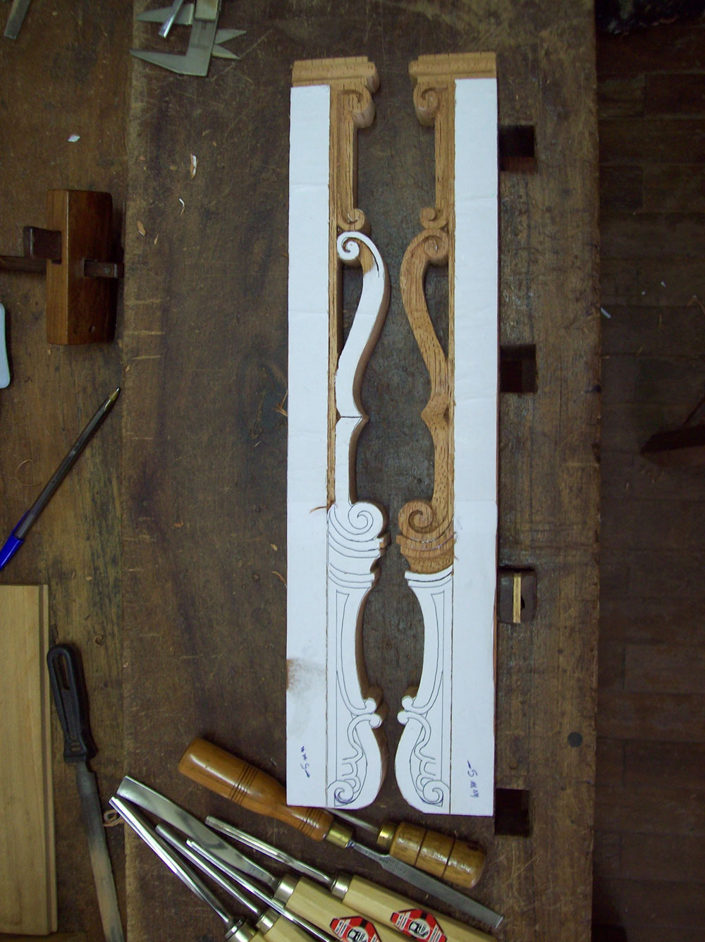 paper photocopy of a carving detail upon the board, instead of drawing it directly by hand, in