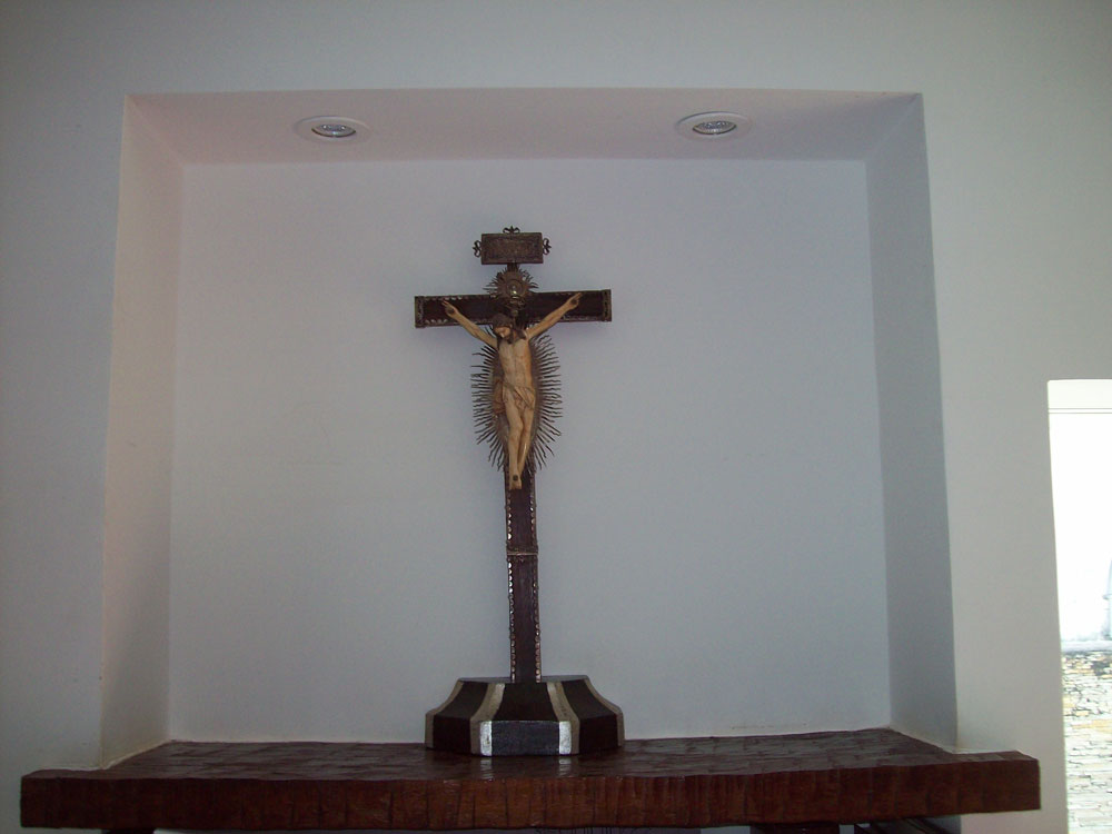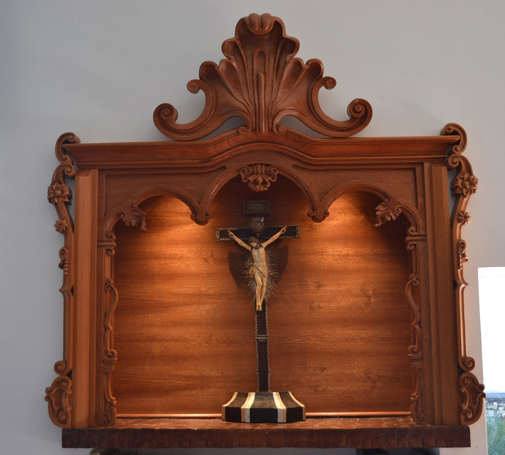 was a rectangular niche where he proudly displays an antique and precious crucifix carved in