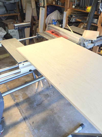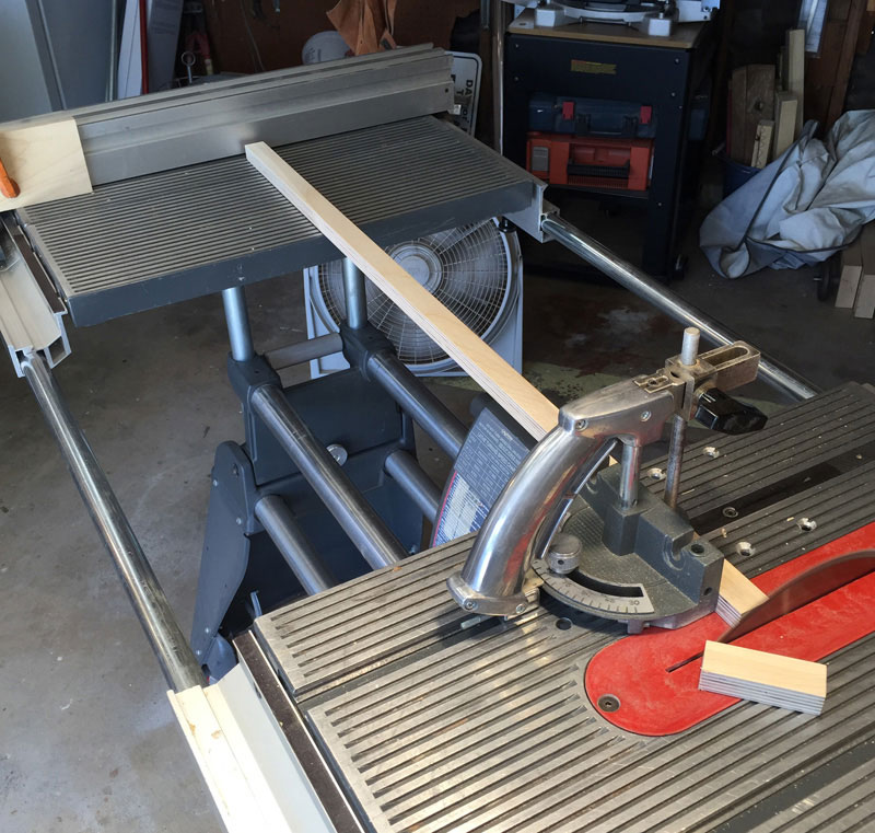 The next step was to go to the shop to rip the plywood into 1 inch strips for the rails and stiles.