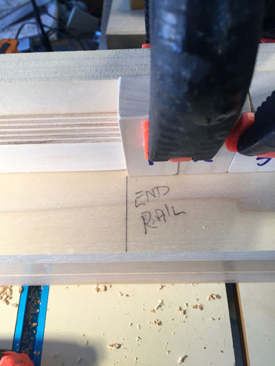 Each rail was marked for the screw locations to be sure that the screw heads did not overlap and that they did not go beyond the edge of the rail.