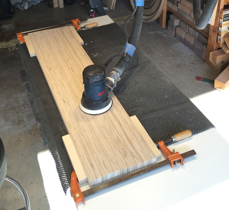 The strips were ganged together and I sanded all four surfaces from P80 up to P220. The sharp edges were then eased over using P150 paper.
