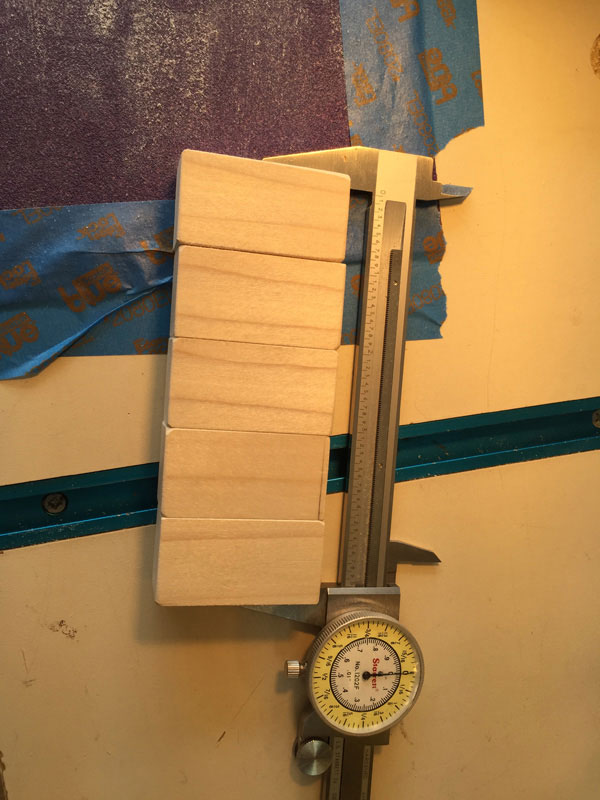 I sized a piece of hardwood 3/4 inch deep by a little over 1 inch wide and cut off five 2 inch long spacer blocks.