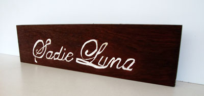 Victor wanted to make something fun for his cat Tigey. He used Gum Tree and carved the words "Tigey" with the