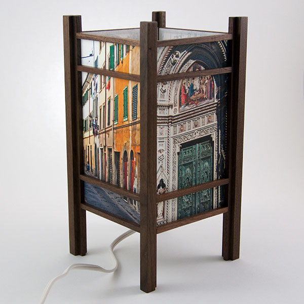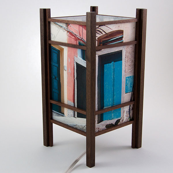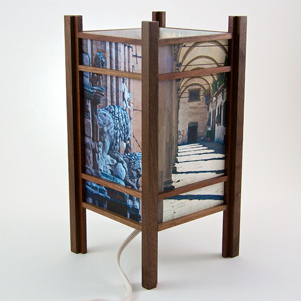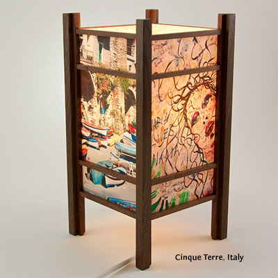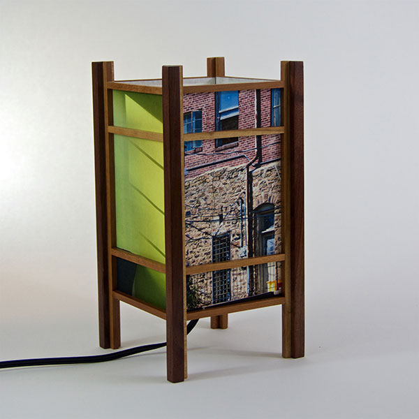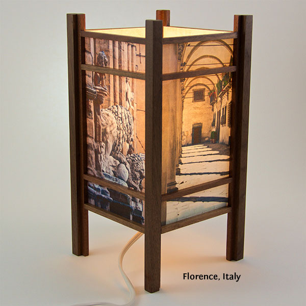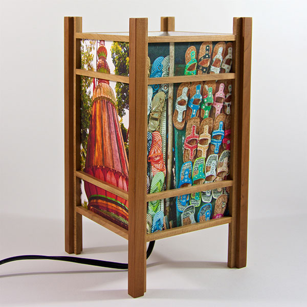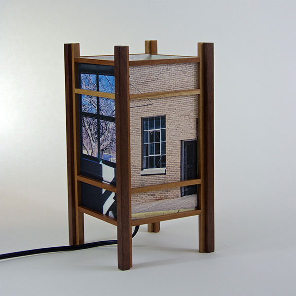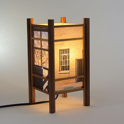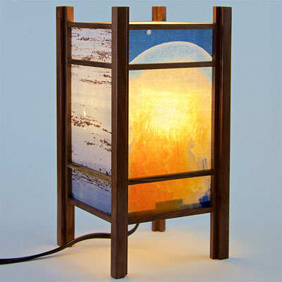 For the past few years I have been perfecting my woodworking and the lamp style, inspired by my love of Japanese art and design, and the "shade" which the light would shine through. At first I was using a pre-print Japanese paper, much like the one that lead me to this, called Chiyogami paper. It has been produced in Japan for centuries from multiple plates with many of the designs originating from textile designs. My next series used my own Abstract Expressionist style sumi and watercolor paintings on a hand-made Japanese paper. Finally, as I perfected the wooden frames, which are made of locally-sourced cherry or walnut, I came to realize that the best "shade" for these would come from my own photos. I print these on the same Japanese paper used for the hand-painted series, but printing them on an inkjet printer using archival inks.