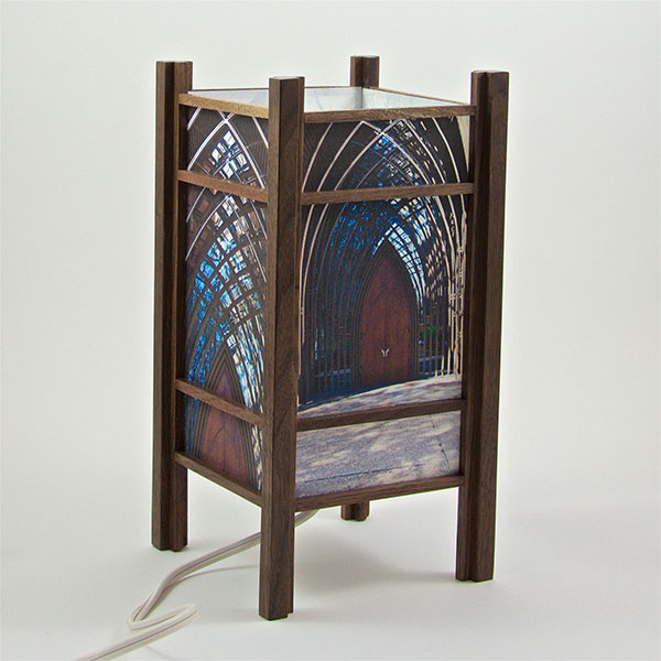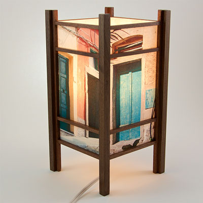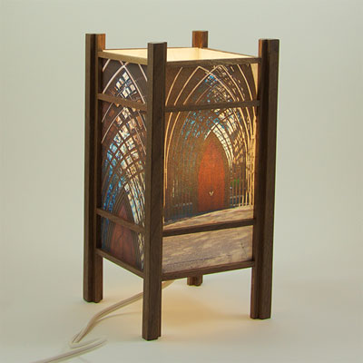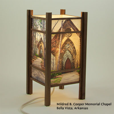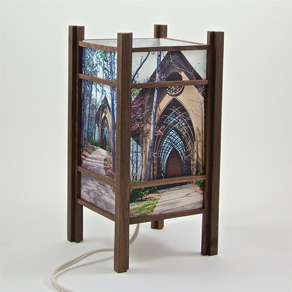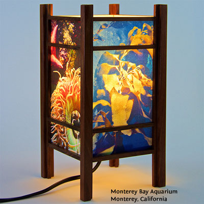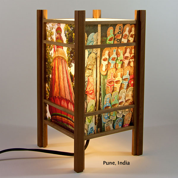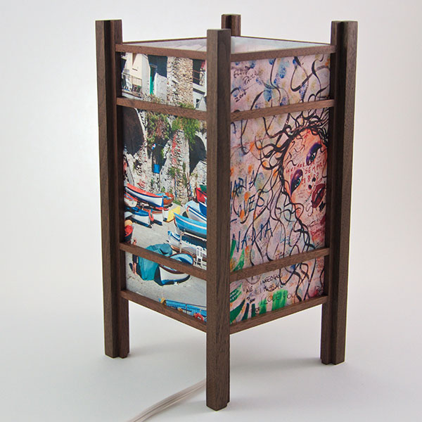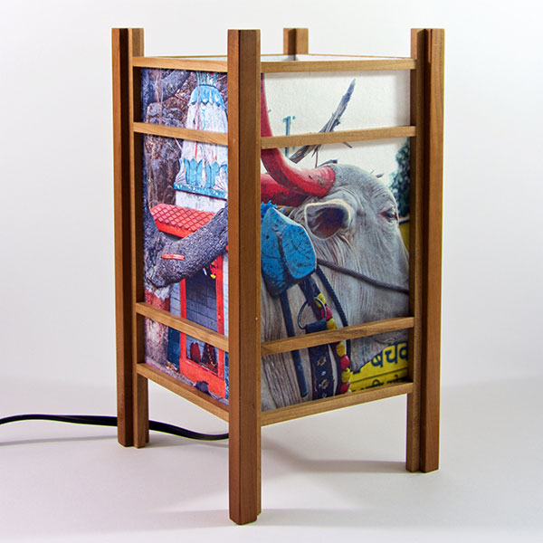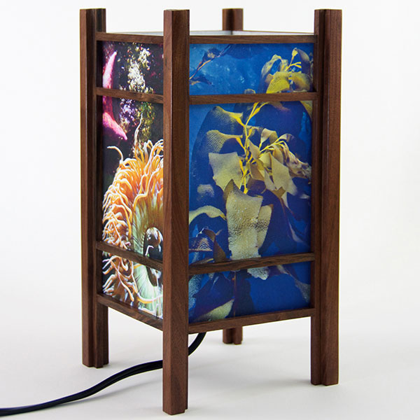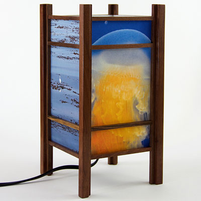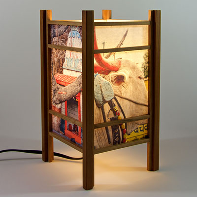 For the past few years I have been perfecting my woodworking and the lamp style, inspired by my love of Japanese art and design, and the "shade" which the light would shine through. At first I was using a pre-print Japanese paper, much like the one that lead me to this, called Chiyogami paper. It has been produced in Japan for centuries from multiple plates with many of the designs originating from textile designs. My next series used my own Abstract Expressionist style sumi and watercolor paintings on a hand-made Japanese paper. Finally, as I perfected the wooden frames, which are made of locally-sourced cherry or walnut, I came to realize that the best "shade" for these would come from my own photos. I print these on the same Japanese paper used for the hand-painted series, but printing them on an inkjet printer using archival inks.