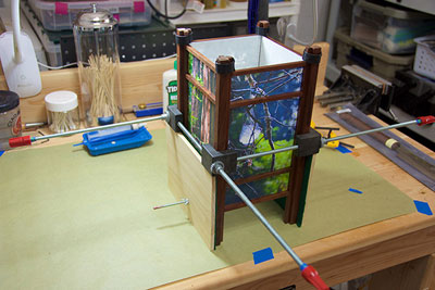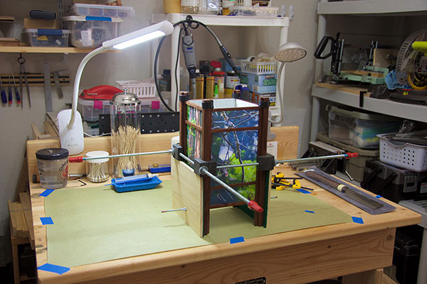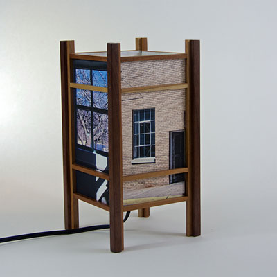 A few years ago, while working on a hand-made Japanese style book, I held up a piece of printed Japanese paper that I was planning to use for the cover, and as the sun shone through the paper, I suddenly saw another depth, a layer of information in the paper that I hadn't seen before. I made the connection between this and my previous stained glass work and it came to me that what I needed to do next was to design a lamp that would shine light onto paper to reveal those hidden depths.