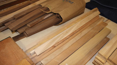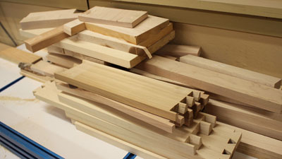 Once sorted by species, the stacks of leftovers are actually huge piles of potential. In years past I've made small picture frames, cutting boards, coasters, plate display stands, carved knickknacks, coat hooks, and toys… I've turned some pieces into pegs (back when I was on a Mission Style kick) and I've even given a few choice pieces to woodturning friends who make pens. Some pieces will make decent reinforcement blocks, wooden table top attachment blocks, corner braces, drawer stops, and, if nothing else, a few pieces will serve well as clamp pads. Don't forget to save a few pieces to use when testing a new finish or determining a shade of shellac for a project.