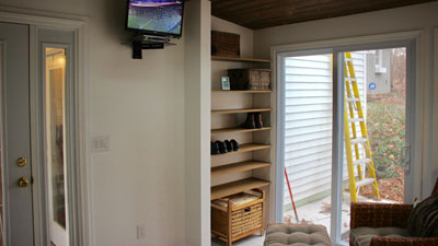 Since the construction was finalized during football season, some consideration was given to the potential of missing a good play while barbecuing, so I put a television on the wall. Hey, creature comforts…